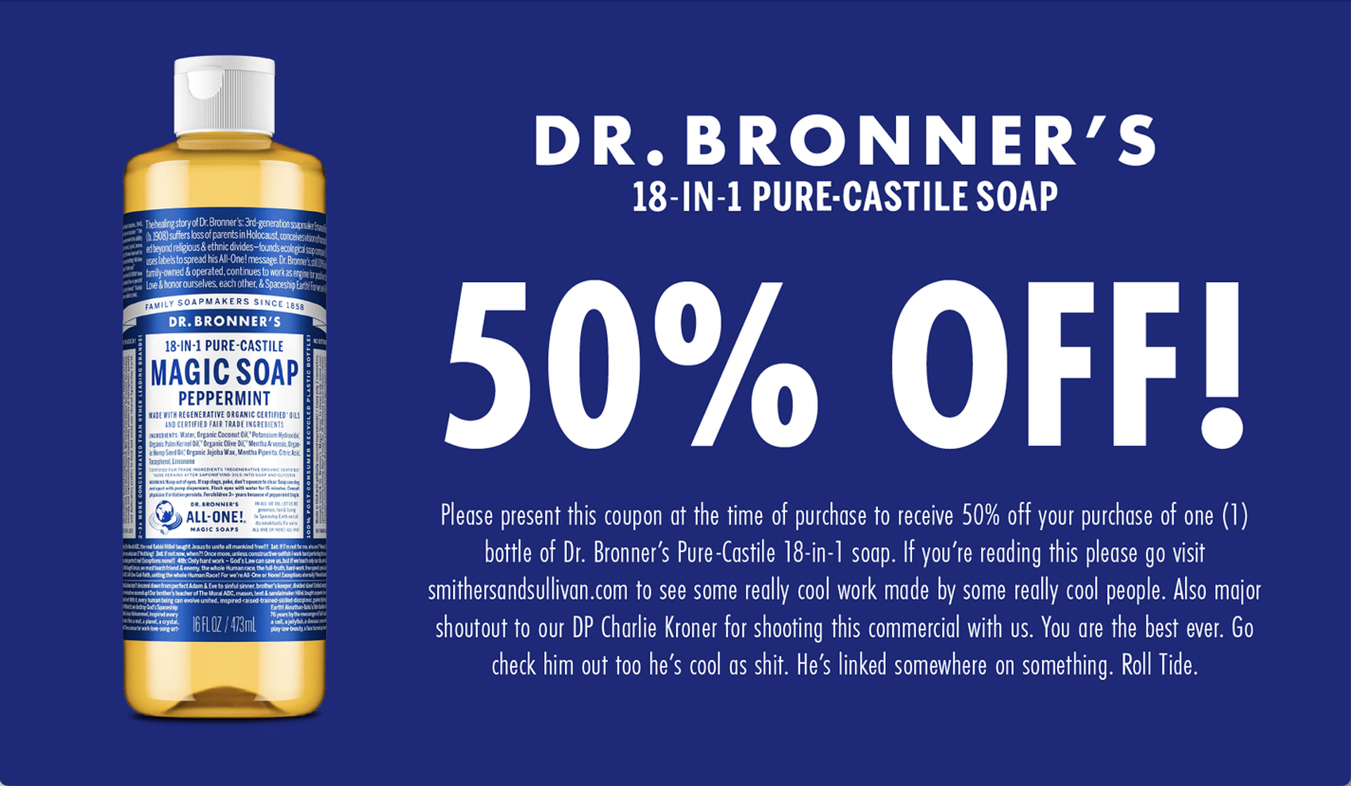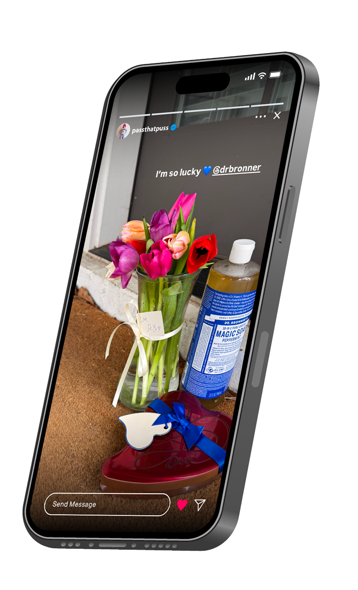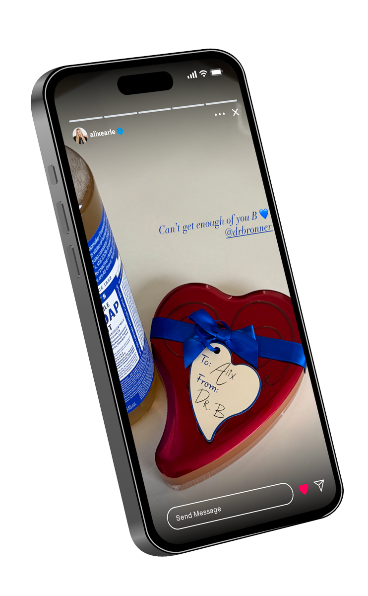 Influencers post cryptic captions and cropped photos with “soft launch” energy… but the reveal is Dr. Bronner’s. By treating the 18-in-1 like a new significant other, we reframe it as something worth showing off. If you’re proud to post it, it’s not a bad look. It’s a flex.
